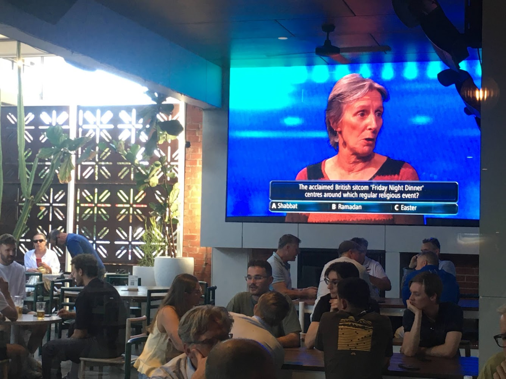 Between the front bar and Unley Road is a beer garden but it’s hot out and we don’t fancy traffic noise and pollution as a weekend entrée. The Chaser — the dopey quiz show and not the satirical comedy — is on the big outdoor screen and this, too, is a disincentive.