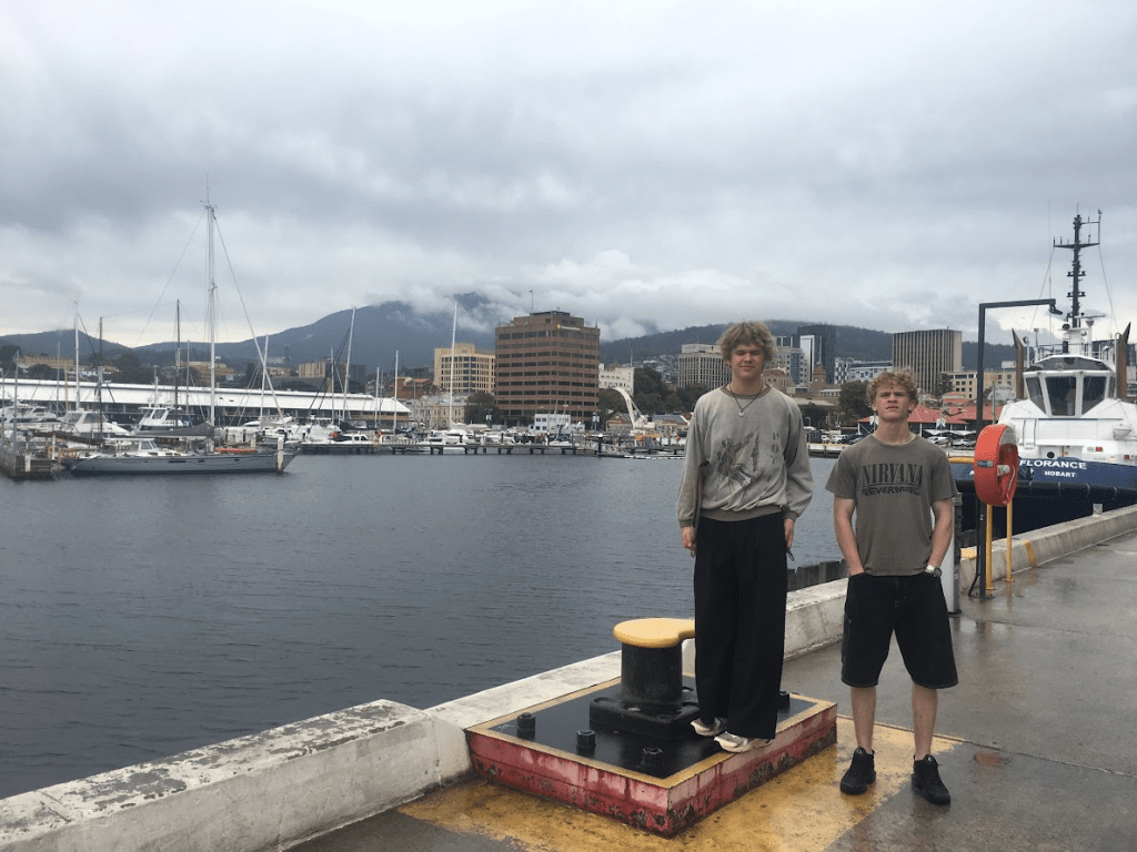 The Uber drive up Mount Wellington was unforgettable. Terror always does this to me. Leaving the gentle suburban streets, we watched the trees shrink until there was only ancient, shattered rock and a sky that felt far too close. Standing at the summit, looking down at the tiny toy-town of Hobart below — the three of us were, momentarily, the highest beings in the city.