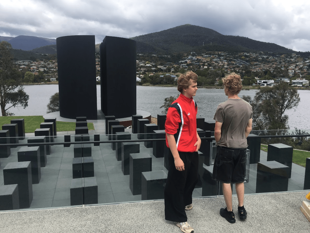 I loved watching you both interrogate that place. It’s a confusing, jarring, and often brilliant maze. Whether we were traversing the colossal concrete war — evoking, for me, the brutality of a concentration camp, the sparks installation, or the Fat Car Porsche, I appreciated how you engaged with both heart and head. We talked about what constitutes art and what does not. Another highlight was the psychedelic band Spooky Eyes and their boisterous set on the MONA lawn.
