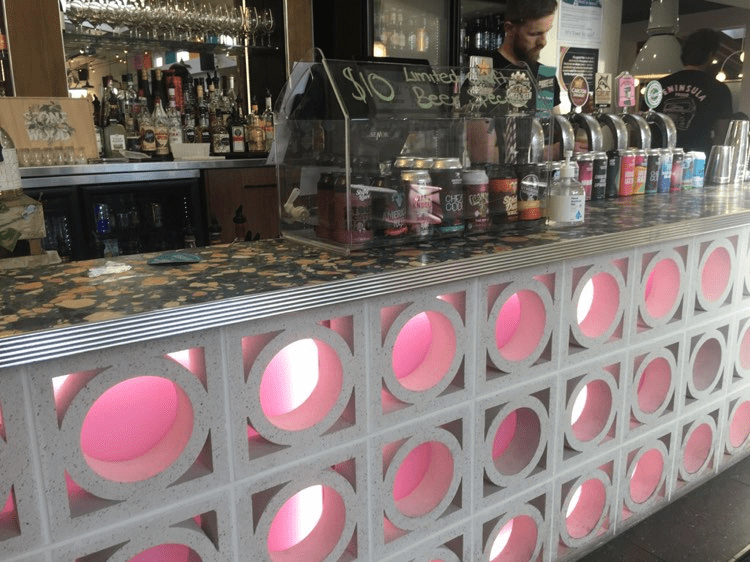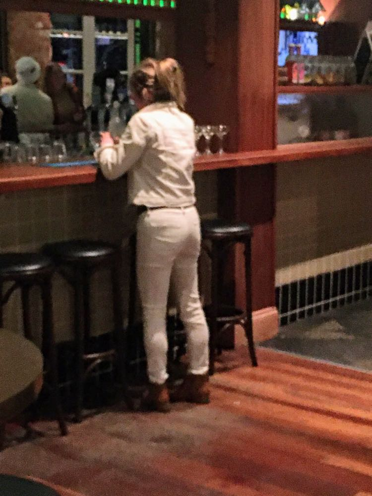 It’s immediately engaging with a long bar, roaring fire, and rustic décor. Wool bales draped from the ceiling. Lots of iron. Floorboards, not sticky carpet. Bursting with folk from the Fat Tyre Festival. Are they cyclists or are they bikers? Invariably with beanies atop their crania, there’s a communal buzz. By the door someone’s selling raffle tickets.