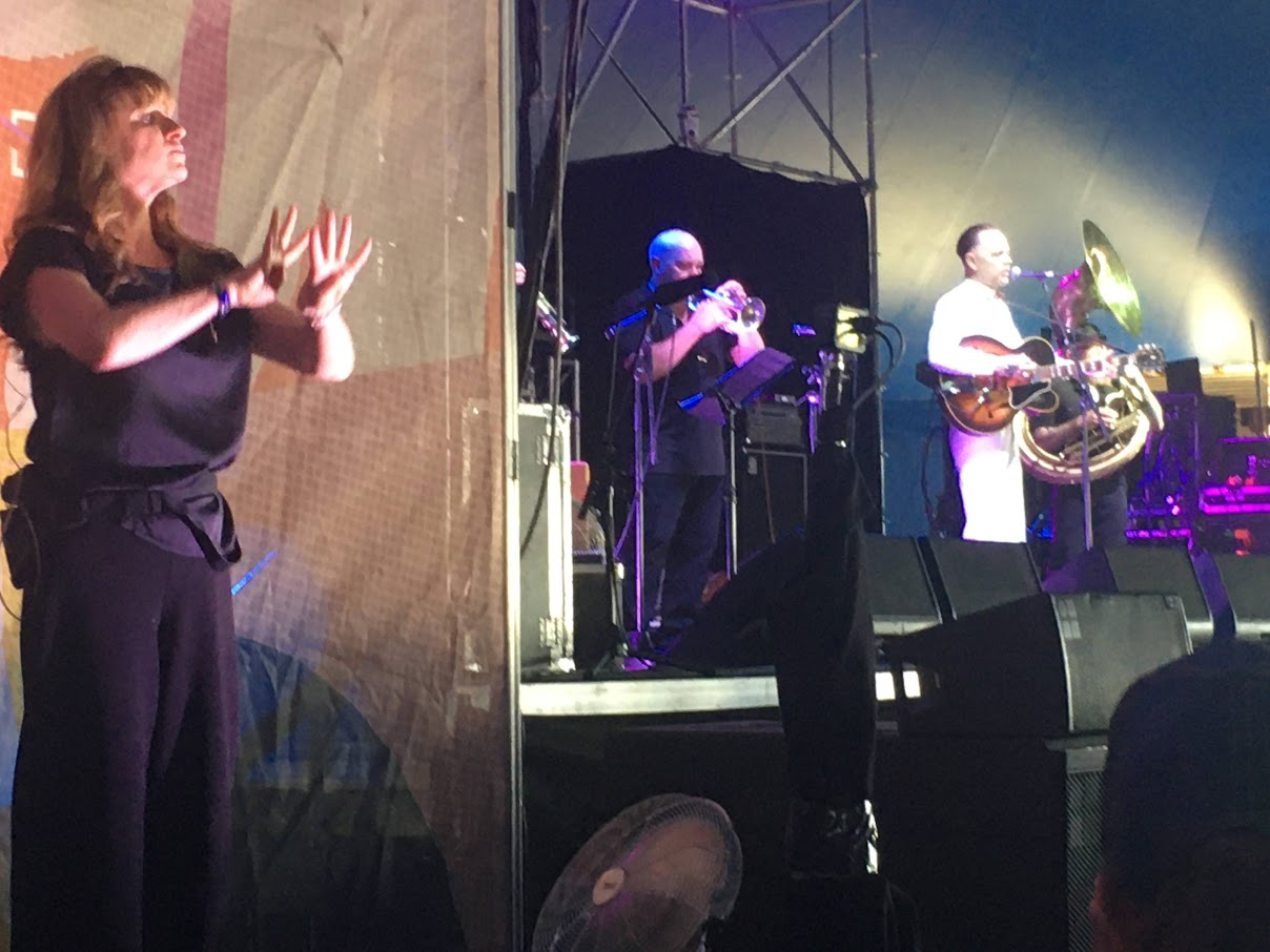 Watching Claire perform at the festival is a joy given her distinctive skill and focus. It’s mesmerising and humbling for I understand not a single sign. She interprets for CW Stoneking, a Katherine native who adopts a Southern persona complete with Mississippi drawl. He plays hypnotic blues music that could be a century old. Backstage, Claire asked him to explain one of his lyrics, and he replied, ‘I don’t know what it means.’ Sometimes, on stage when speaking between songs, he slips briefly, almost imperceptibly, back into his Territorian accent.