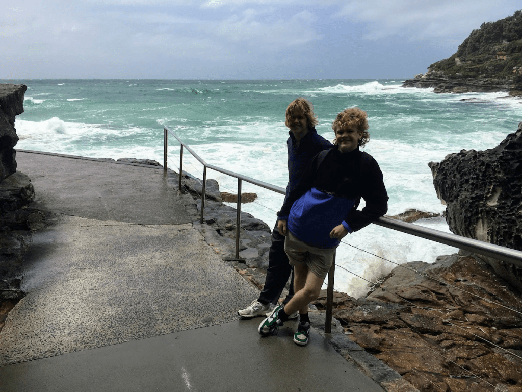 One particularly dramatic moment came in Bondi. Jumping off the bus onto the footpath, Alex immediately realised the problem. ‘Dad, I’ve left my video camera on the bus.’ The 333 omnibus promptly roared off down Campbell Parade—with the camera still on the back seat. I said, ‘You better run off after it!’ Watching you both dash off, cinematically, to catch the bus—and succeed about 500 metres later—was a heartwarming moment although Max hurt his calf (too many weights and insufficient cardio). I was reminded of Jason Statham in The Framer.