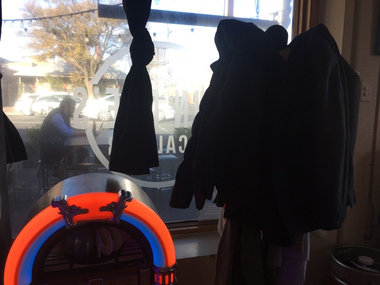 A quick scan reveals walls of beer coasters; a footy tipping chart; an old technicolor juke box; posters advertising the meat tray raffle on Fridays, live music, comedy nights and above the bar a small TV is set to Sky Racing with the gallopers in the dusk at Scone and Coleraine. My vista could also be a deleted dream scene from the Big Lebowski or an exhibit in the Tate Modern or Hobart’s MONA.