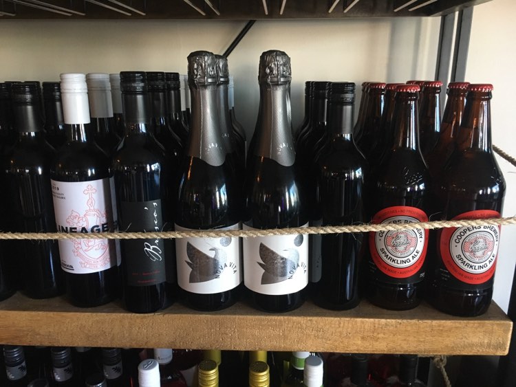 I order a Prancing Pony Session Ale for me and a white for Claire and then spy a large wine rack under the big TV. All upright, there’s dozens of bottles shoulder-to-shoulder as if they’re ready for some grim but vague battle. It’s a phalanx of Cabernet Franc. At the end of one shelf is that most celebrated vintage: Coopers Sparkling Ale (750ml). Close inspection reveals these are the highly drinkable 2021.