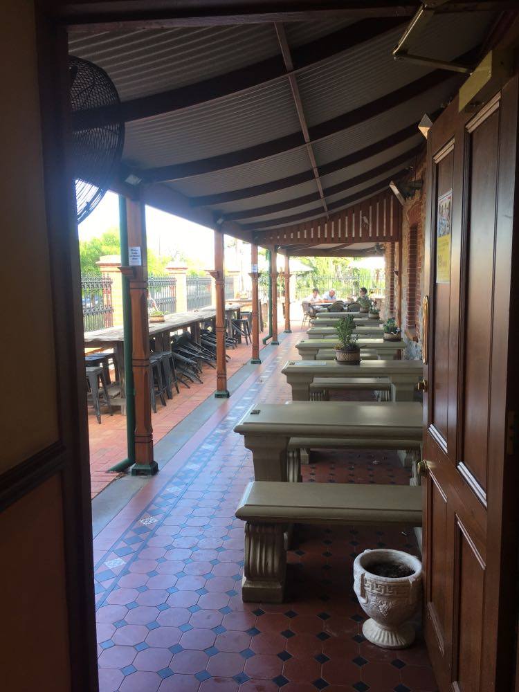 Built in 1851 the Normy is among the state’s oldest pubs and there by the veranda we all admired the beautiful tiling while inside each dining room was magnificent lead lighting.