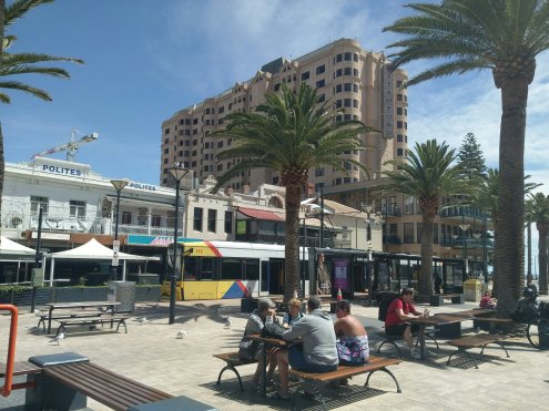 Francis Ford Coppola himself would’ve enjoyed the mis en scene of my outside table, two happy dogs and Glenelg’s seaside square, on a spring afternoon.