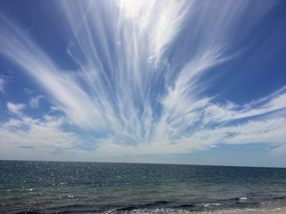 It’s cloudy over the hills, but sunny by the beach. We wonder if it’s hailing in Belair. Other Kapunda mates are at Williamstown in the Barossa as the Bombers try to sneak into the finals. Up there’s a very wet winter. Trev wonders if it’s more suited to submariners. I ask about folks eating a marinara sub. It’s probably bad news for all.