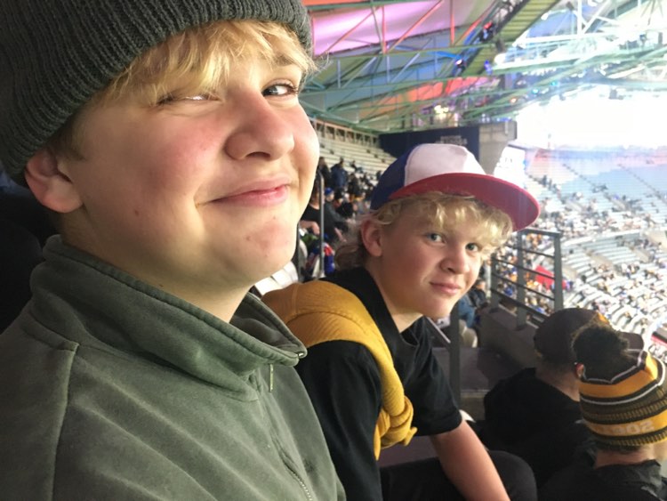 Traversing Flinders Street, I jog by the Sea Life Aquarium and make my way through Enterprize Park. I later learn it’s where the first European settlers arrived in 1835. My boys, Alex and Max, are asleep upstairs in our apartment. We’re here for a weekend of footy and exploration.